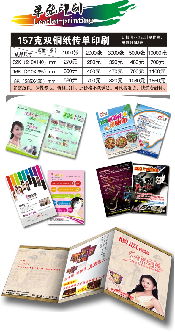 橫式彩頁(285×210mm),豎式彩頁(210×285mm),折疊彩頁(對折,荷包折或風琴2折);